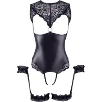 Cottelli Bondage - Glänzender Offener Body & Handfesseln (Schwarz) - Mab34,69 €